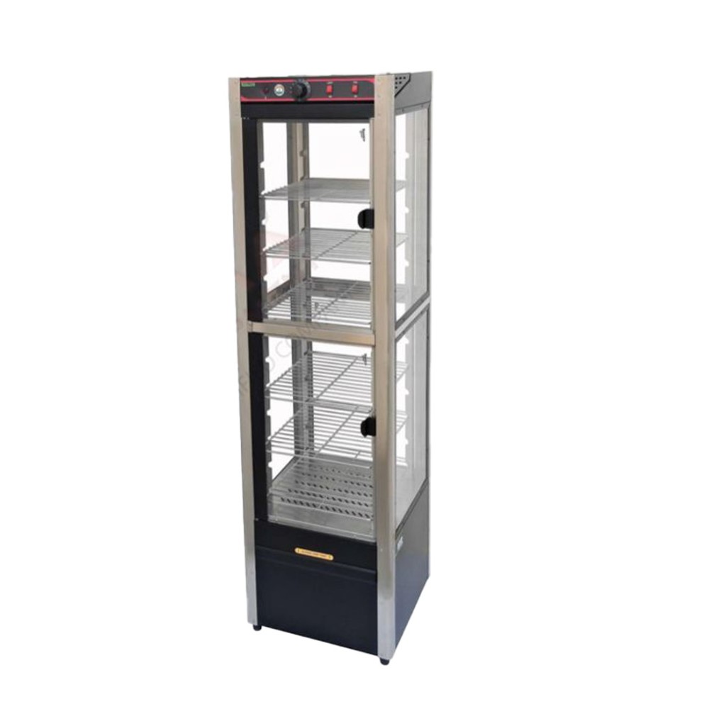 Elegant 150L food display warmer with toughened glass, adjustable shelves, and convection heating for cafes, bakeries, and restaurants.