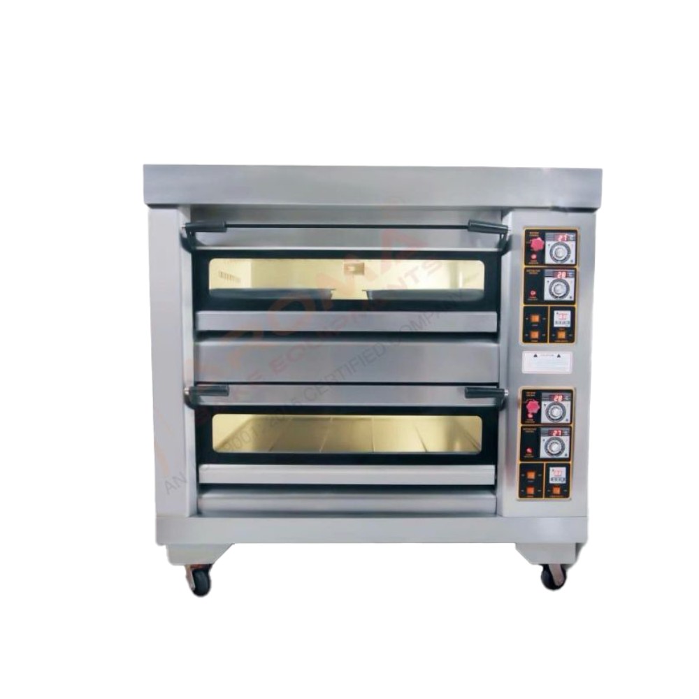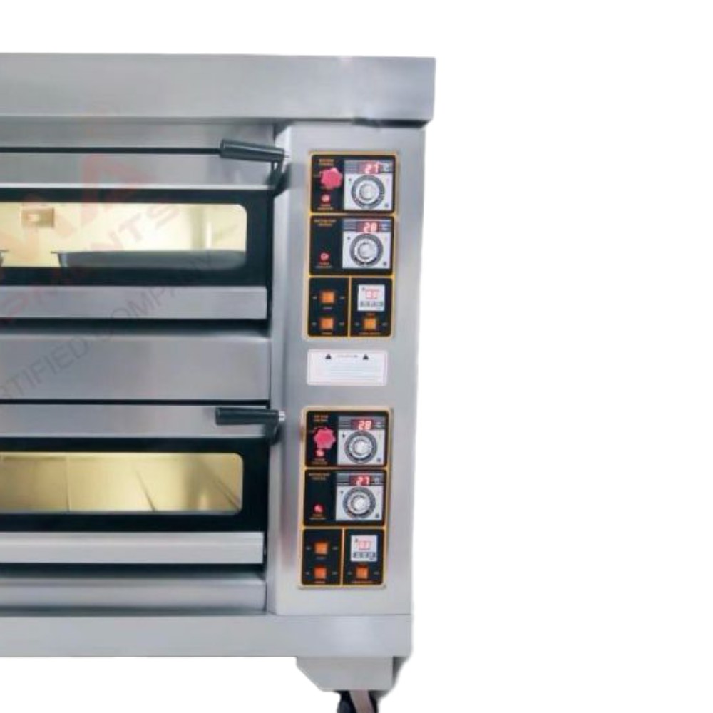 The Gas Double Deck Oven with 4 trays is designed for professional bakeries and food businesses requiring reliable and efficient baking performance. Built with a fully stainless steel body and equipped with German technology, this oven ensures long life, energy efficiency, and consistent baking results. Its dual-layer design and large tray size (16”x24”) allow high-volume baking in less time.